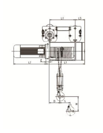 型號(hào) 起重量(T) 工作級(jí)別 滑輪倍率 起升速度(m/min) 起升電機(jī)功率(kw) L2(mm) φmm Amm A0mm Bmm Hmin   mm L3    mm S      mm