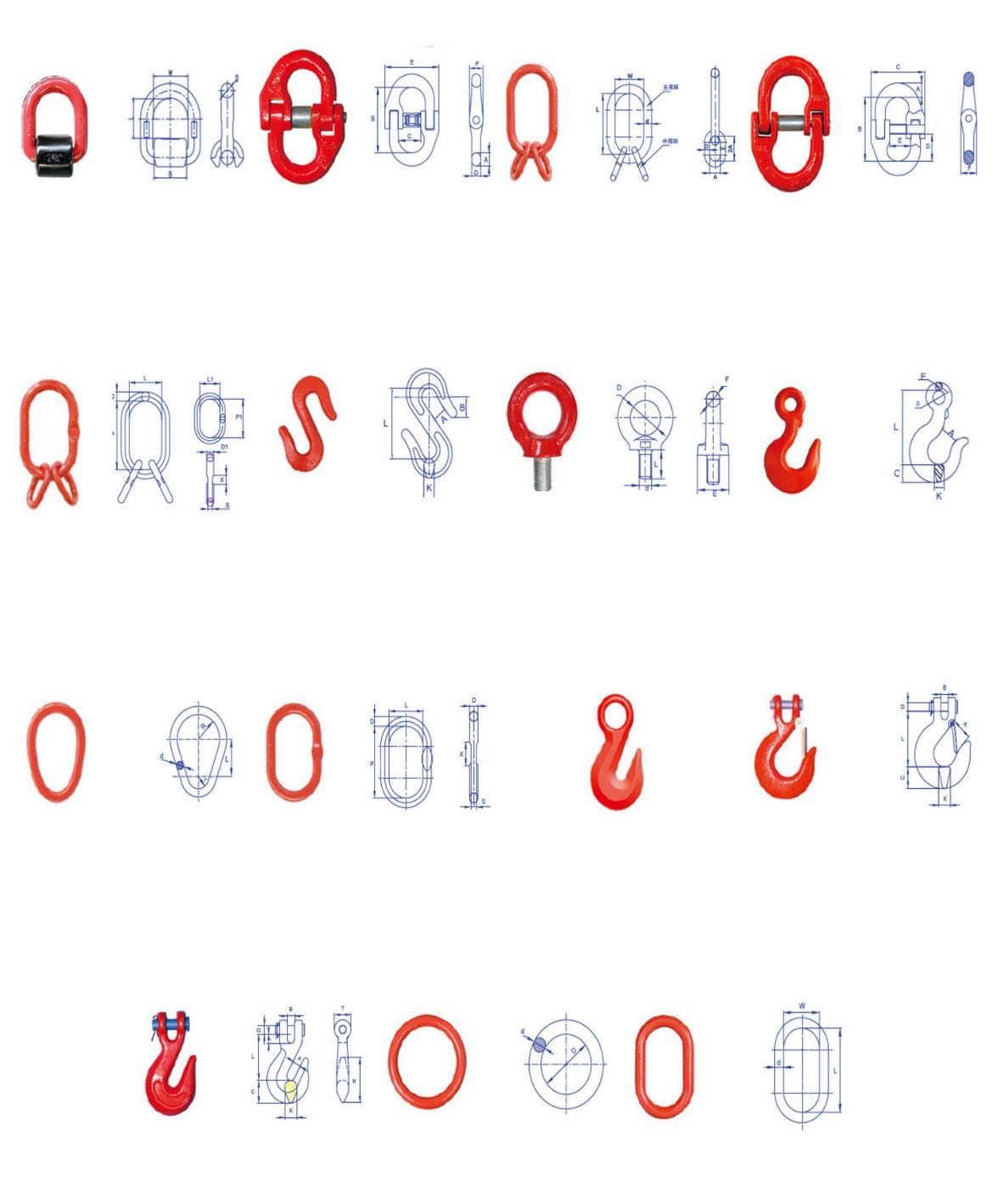 吊鉤 吊環 采用精密模鍛,經熱處理和表面處理工藝加工而成。 產品用途:在起重吊裝、捆綁、拖拽、固定等作業中,作為索具之間或者索具和被吊物之間的連接件使用。 產品規格、種類齊全,額載范圍從 0.5t - 600t,可滿足于不同場合的吊裝作業。