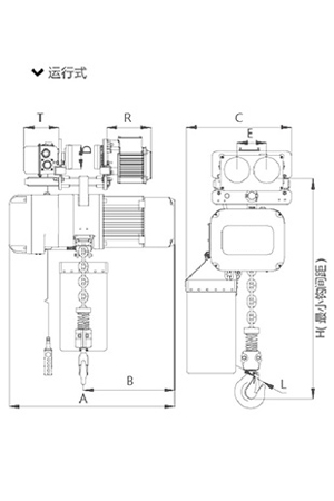 | 運行式環(huán)鏈電動葫蘆0.25T-5T尺寸參數(shù) | |||||||||