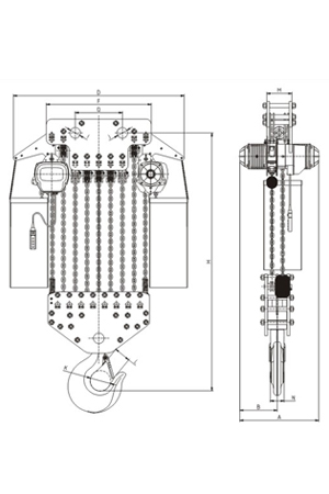 磅磁剎車:新設計的磁力產生器,其特性為產磁。可在電源切斷的同時間剎車,保證吊重時剎車確保安全。極限開關:吊上吊下都有極限開關裝置,使自動停止,防止鏈條超出,確保安全。